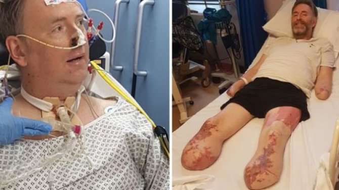 Pria berusia 46 tahun ini kemudian dilarikan ke unit perawatan intensif di Rumah Sakit Gwent di Newport keesokan harinya. Saat itu dokter telah mengatakan bahwa ia telah terkontaminasi bakteri meningokokus yang mengakibatkan ia mengalami sepsis.
