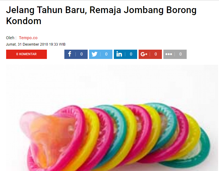 Informasi ini memang tahun 2013 lalu terjadi di Palopo Sulsel, dilansir jpnn.com, penjualan alat kontrasepsi kondom, laris manis di Palopo, Sulsel, menjelang perayaan malam pergantian tahun.