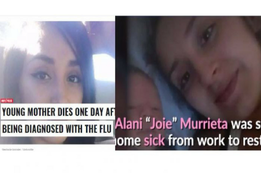 Alani Murrieta meninggal karna flu yang berubah menjadi pneumonia. Murrieta meninggalkan 2 anak laki-lakinya yang berumur 2 tahun dan 6 bulan. (*)
