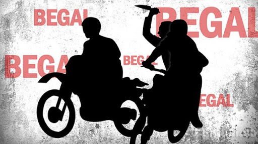 Seorang begal dengan kelompotannya sedang mengincar mangsanya, pas jam 02. 00 WIb awal hari serta sebagian begal itu berhasil merampas 1 motor mempunyai seorang anak muda yang memang telah di untit di jalan dan berhasil di begal masuk jalanan yang sepi.