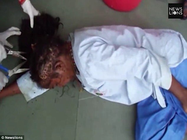 Preeti Devi, seorang wanita tunawisma menjerit kesakitan ketika kepalanya digerogoti banyak belatung
