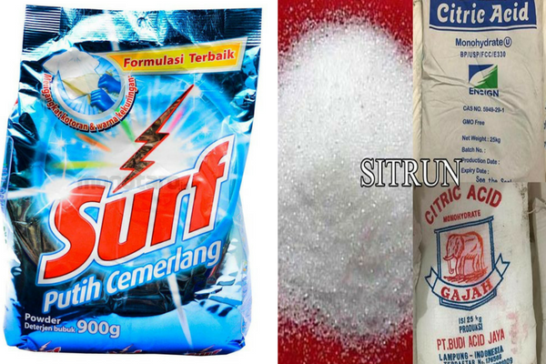 Bubuk citrun ini populer amat efisien dalam mengatasi noda, diantaranya noda luntur serta noda tinta yang kebiasaannya amat susah dihilangkan Cukup dengan memadukan bubuk citrun serta detergen lantas tambahkan air yang cukup buat merendam pakaian hingga seutuhnya terendam.