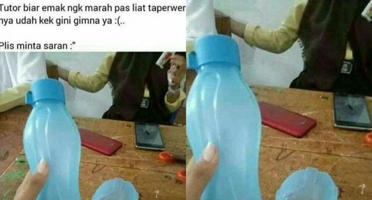 "Tutor biar emak ngk marah pas liat taperwernya udah ke gini gimana ya. Plis minta saran," tulisnya dalam unggahan di grup Panti Jomblo yang dikutip dari akun Twitter @hati2dimedsos.