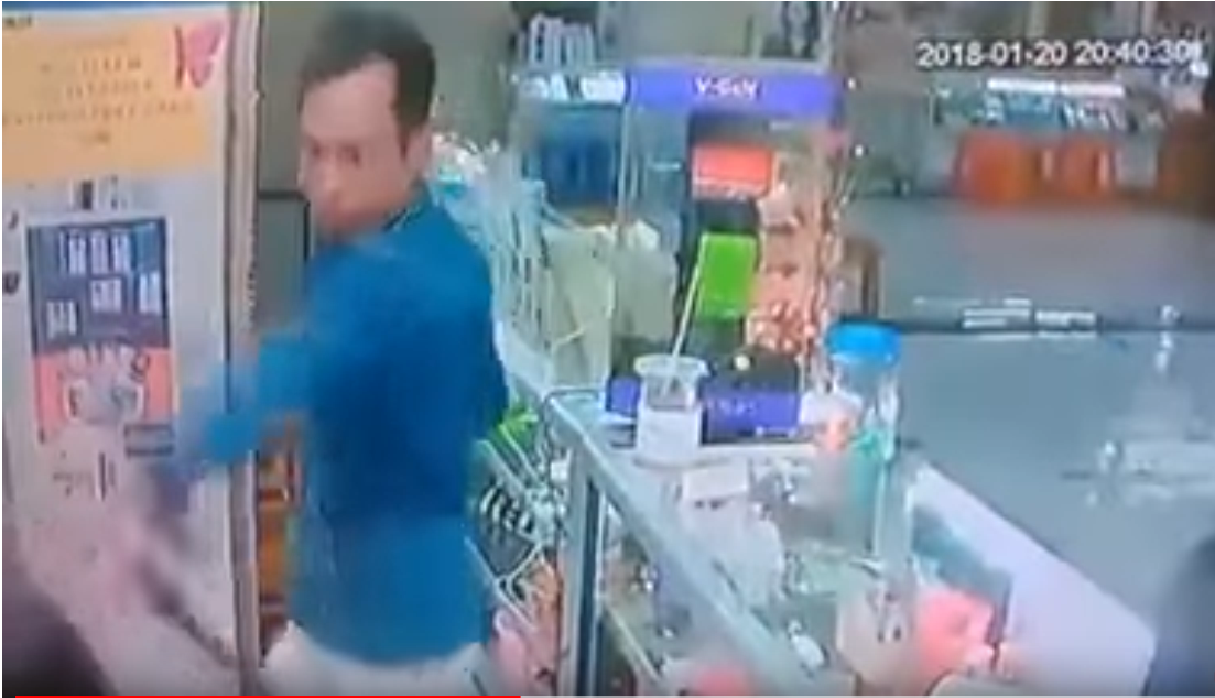 Dalam video unggahannya tersebut terlihat beberapa pegawai sebuah counter accessories tengah melayani pembeli, tiba-tiba muncul seorang pria memegang sebilah parang langsung membacok kearah penjaga counter.