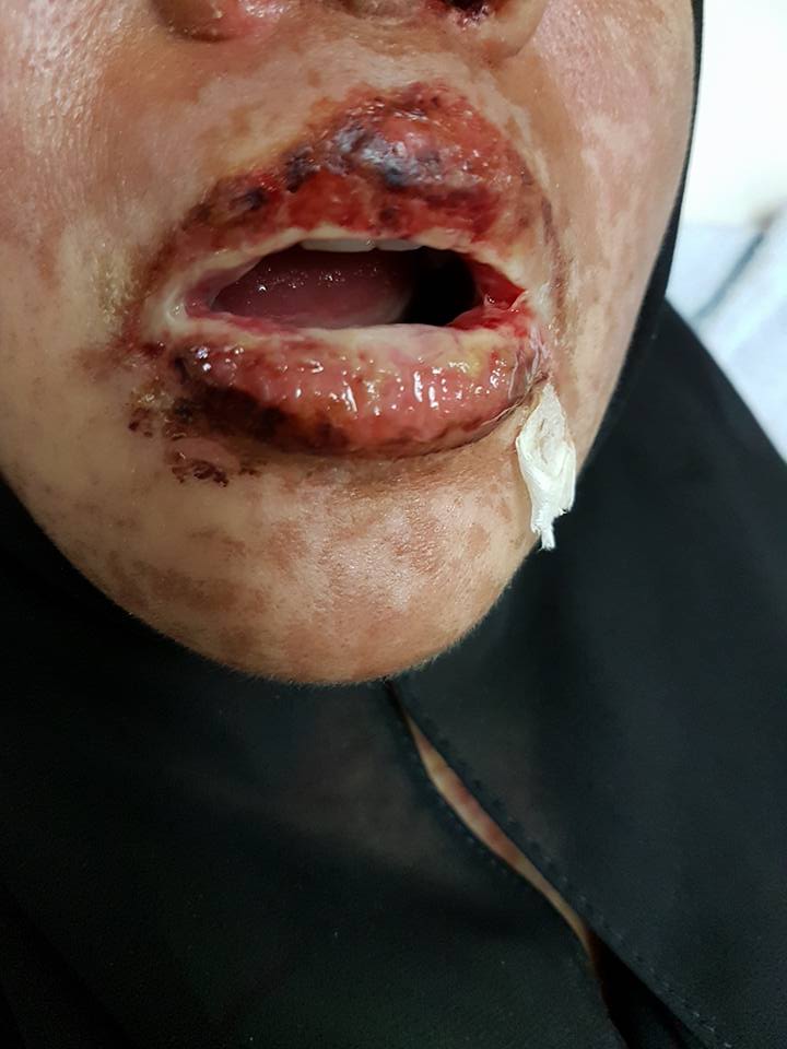 Kondisinya bertambah parah, Bibirnya membengkak.