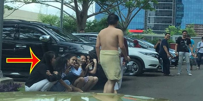 Sekelompok wanita di gedung tersebut malah sempat dibuat gagal fokus.