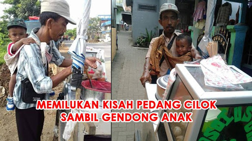 Sebuah foto menjadi perbincangan warganet di sosial media mengenai pedagang cilok yang sambil menggendong anaknya saat berdagang.
