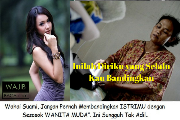 Siapa sih yang tidak mau mempunyai istri cantik baik, sholehah, tapi pasti suatu saat nanti akan menua, sebagai suami janganlah engkau membeda-bedakan istrimu dengan perempuan muda, memang rumput tetangga lebih hijau, namun dengarkan jeritan ibu-ibu ini sebagaimana dikutip dari ruangmuslimah.com :