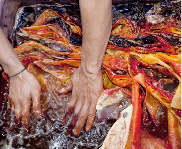 - Setelah direndam satu malam, bilas dan cuci batik dengan deterjen.