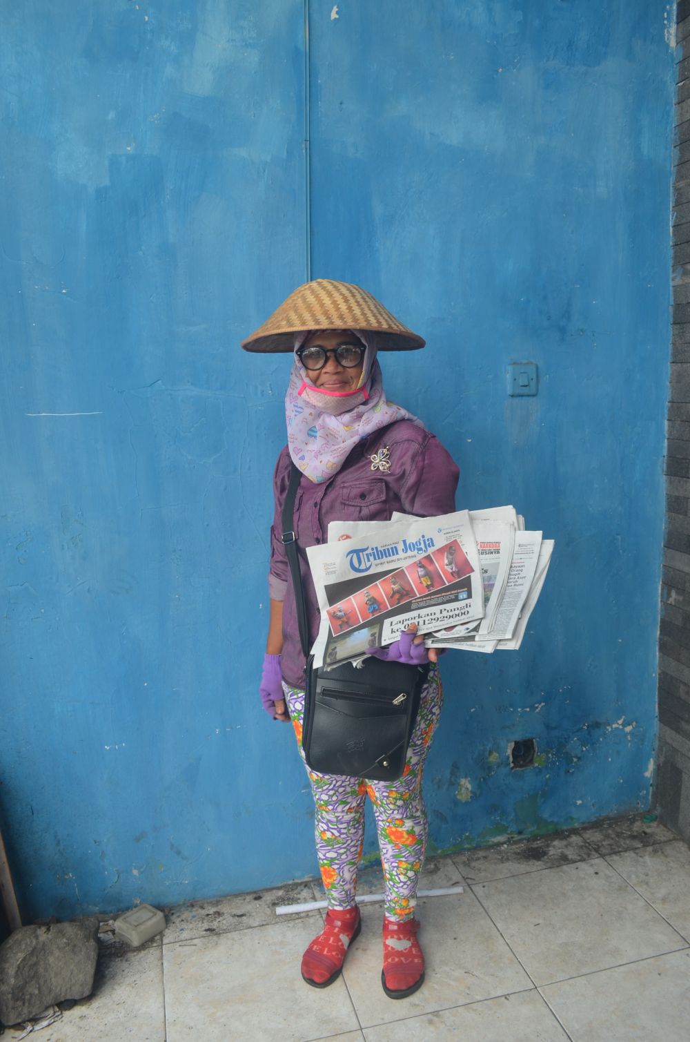 Sesampainya di Jogja, dengan menggunakan caping dan kacamata andalannya, Hani bergegas mengambil setumpuk koran yang sudah disediakan sebelumnya.