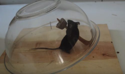 Untuk menjebak tikus ke dalam mangkuk tersebut, tentu Anda harus menusukan makanan kesukaan tikus ke tongkat kecil yang menopang mangkuk (lihat gambar di bawah ini).