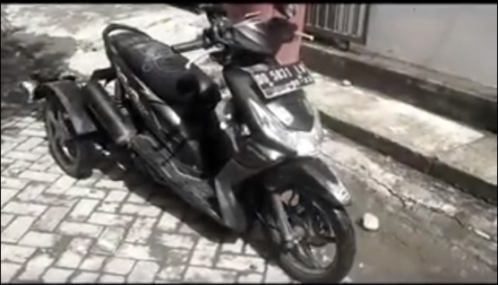 Sehari-harinya, Andika menggunakan motor matic yang diberi roda bantuan di kanan kiri agar mempermudah dirinya dalam berkendara.