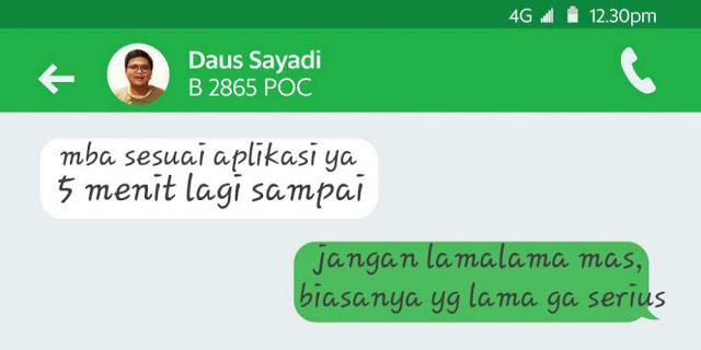 Atau malah kamu yang keisengan ngirim percakapan yang kocak ke driver? Kamu nggak sendiri kok. Ada banyak chat ngelantur yang hadir antara pelanggan dengan drivernya.
