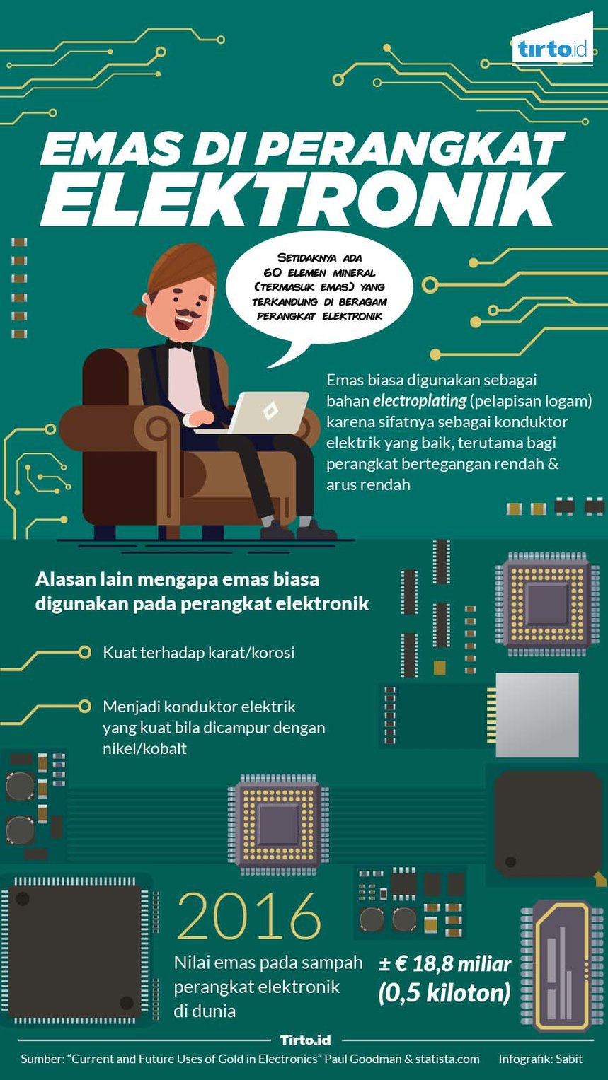 Angka yang cukup besar itu, menurut Hageluken, tercipta karena industri elektronik dunia rata-rata menggunakan lebih dari 300 ton emas setiap tahun untuk berbagai keperluan di dalam perangkat elektronik yang dibuat. Angka tersebut setara dengan 12 persen emas yang ditambang di seluruh dunia.