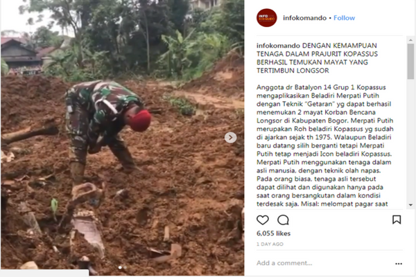 Aksi Heroik Anggota Kopasus yang Temukan Korban Longsor Dengan "Tenaga Dalam"