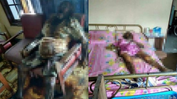 Sementara jenazah ibunya terbujur kaku di ranjang kamarDiperkirakan, pasangan suami istri ini meninggal sejak dua minggu lalu.