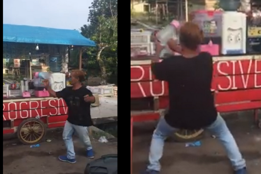 Sebuah video viral di media sosial menunjukkan aksi kocak seorang penjual minuman dingin di Bangkirai, Palangka Raya, Kalimantan Tengah.