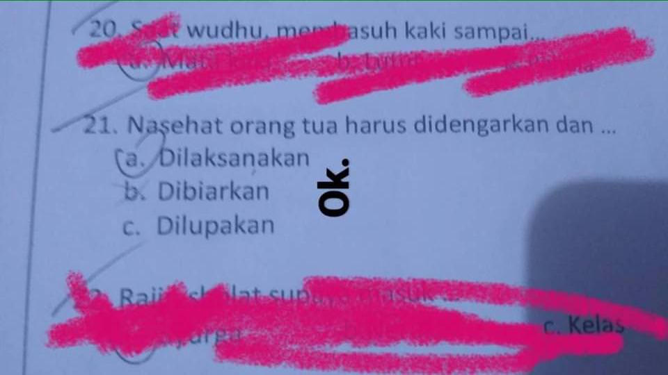 Apakah kalian pernah iseng melihat hasil ujian atau lembar jawaban anak anda?