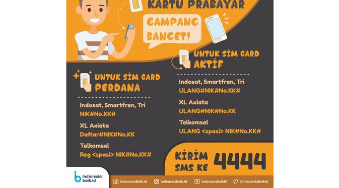 - Bagi pengguna baru Tri, Smartfren, dan Indosat, pendaftaran bisa dilakukan dengan mengirim SMS dengan format: 16 digit NIK#16 digit nomor KK