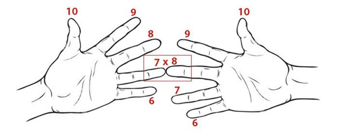 Masih ingatkan Anda tabel pengalian jaman dulu? Mungkin masih mudah untuk melakukan pengalian 1 sampai 5, namun saat mulai pengalian 6 keatas, banyak dari kita yang mulai gagap. Metode mudah ini tak diajarkan di kebanyakan bangku sekolah, namun ini membuat perhitungan menjadi sangat cepat dan intuitif:Tandai dengan nomor imajinatif setiap jari kedua telapak tangan Anda, dimulai dengan jari manis dengan nomor 6 hingga jempol menjadi nomor 10.