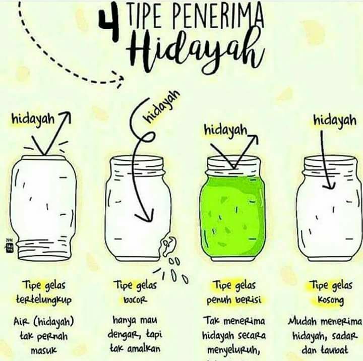 Penulis Taufiq Firmansah | Ditayangkan 05 Mar 2018Hidayah tidak begitu saja turun pada kita, dan dalam sekejap bisa merubah diri kita, karena ada beberapa golongan tipe apabila hidayah diibaratkan air, maka ada beberapa tipe manusia dalam menyikapi hidayah