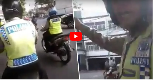Tak diketahui kapan dan dimana peristiwa tersebut terjadi, namun motor yang dikendarai polisi tersebut memiliki plat B.