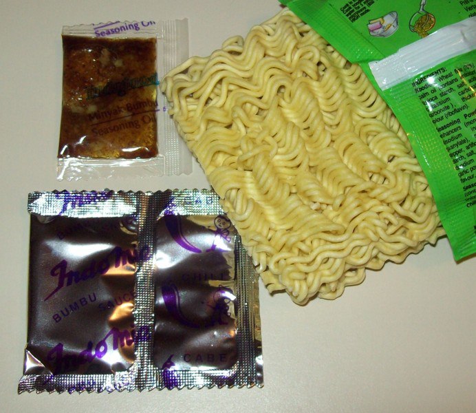 Semangkuk mie instan mengandung hingga 25 jenis aditif makanan, serta paling kerap ditemui antara lain, MSG-Monosodium Glutamat. karamel, asam sitrat, tert-Butylhydroquinone serta sebagainya.