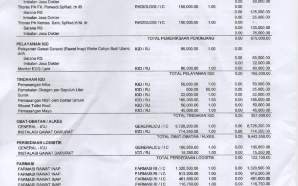 4. Uang Jaga malam di rumah sakit: Rp. 3.000.000