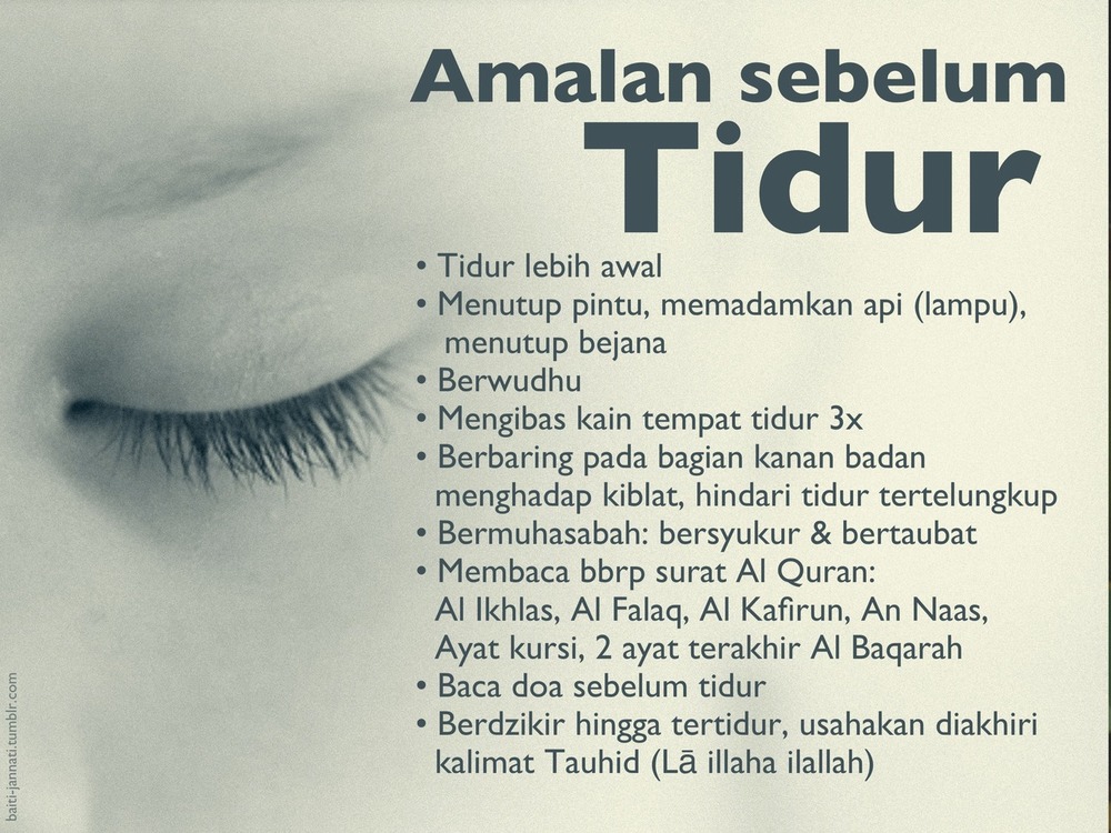 Sebagai seorang muslim yang selalu ingin dicintai Allah, maka tak pelak jika seorang muslim harus mengetauhi adab dalam tidur sesuai yang diajarkan Rasulullah SAW. Apa sajakah adab-adabnya? Berikut poin-poinnya, seperti pada gambar: