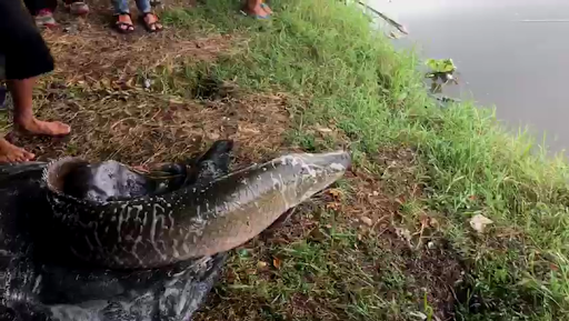 Penangkapan ikan Arapaima disepanjang aliran sungai Brantas, Jawatimur.