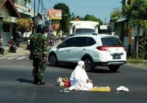 Viral emak-emak sholat di jalan raya..