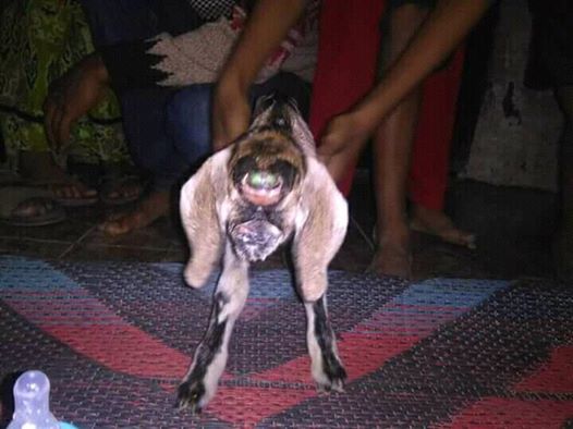 Warga Kecamatan Bolo, Kabupaten Bima, Nusa Tenggara Barat, dihebohkan dengan lahirnya seekor kambing dengan rupa yang tidak lazim seperti kambing lainnya.