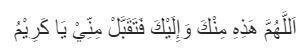 Allâhumma hâdzihî minka wa ilaika, fataqabbal minnî yâ karîm