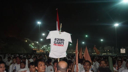 Malah membewa kaos yang digunakan sebagai bendera #2019gantipresiden
