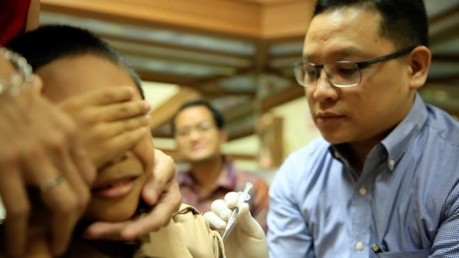 Imunisasi MR bagi anak sekolah dilakukan di Jakarta Pusat Agustus 2017, dilansir dari bbc.com.