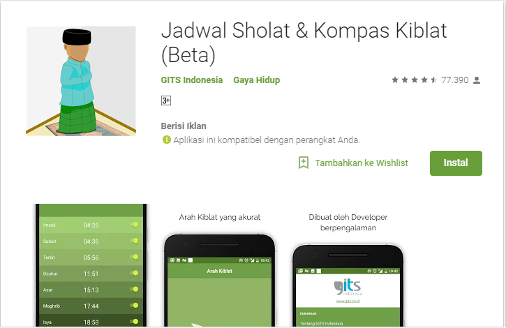Sama seperti aplikasi yang berada di urutan pertama sebelumnya, aplikasi yang dikembangkan oleh GITS Indonesia ini juga hanya mempunyai fitur khusus untuk mengetahui jadwal sholat dan arah kiblat.