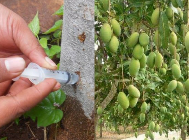 2. Lakukan injeksi dengan 10 cc larutan campuran dari pupuk NPK dan hormon yang telah mengandung giberelin.