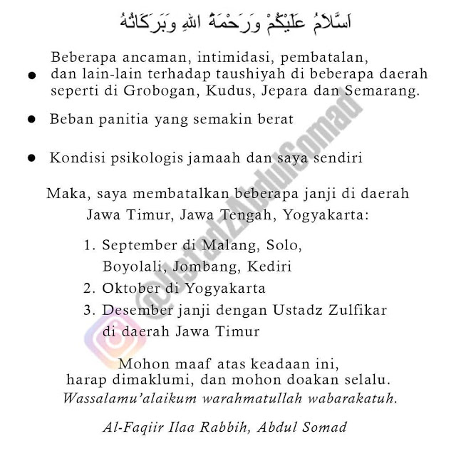 Selain mengalami penolakan, UAS juga pernah diintimidasi. Melalui akun Instagramnya @ustadzabdulsomad, UAS juga pernah mengunggah pengumuman pada Senin (3/9) lalu.