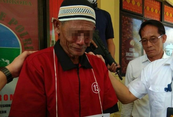 Seorang kakek asal Aceh ditangkap karena nekat menjadi kurir 1 kilogram sabu (foto: Raja/detikcom)