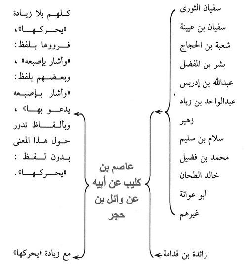 Akan tetapi, mayoritas perowi tidak menyebutkan sebagaimana yang disebutkan oleh Zaidah. Sehingga dari sini kita diamkan tambahan yang dibuat oleh Zaidah yaitu tambahan “yuharrikuhaa”, artinya beliau menggerak-gerakkan jarinya. Berikut adalah tabel sebagai penjelas yang kami maksudkan. Wabillahit taufiq.
