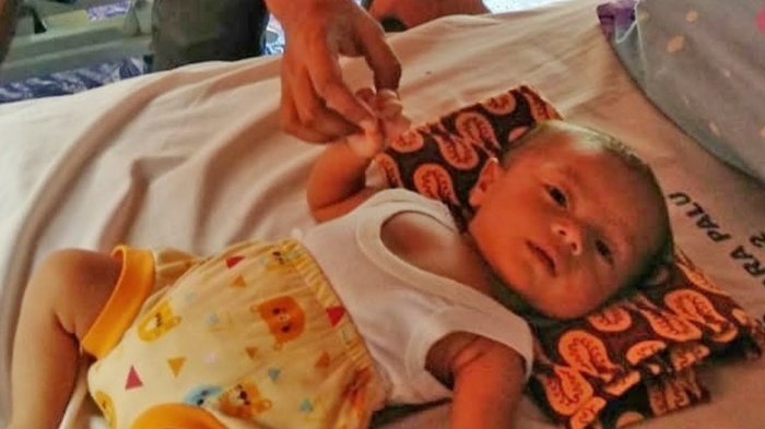 Bayi bernama Putra Mandala, ditemukan oleh warga di atas pohon saat proses evakuasi korban tsunami Palu, Jumat (28/9/2018) lalu.
