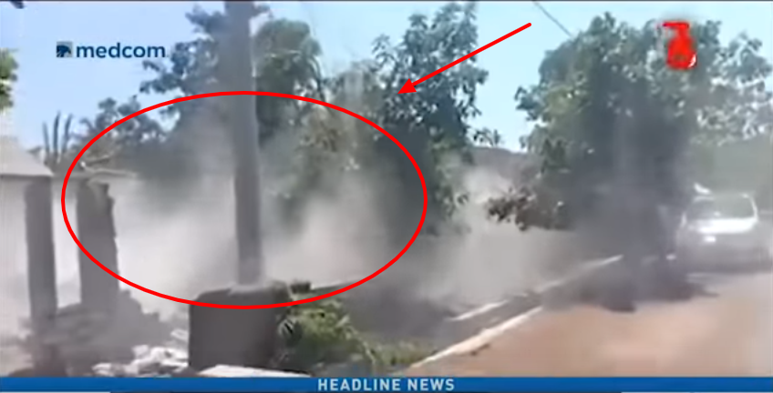 Video amatir gempa Lombok Utara, terlihat begitu banyak debu bangunan yang hancur.