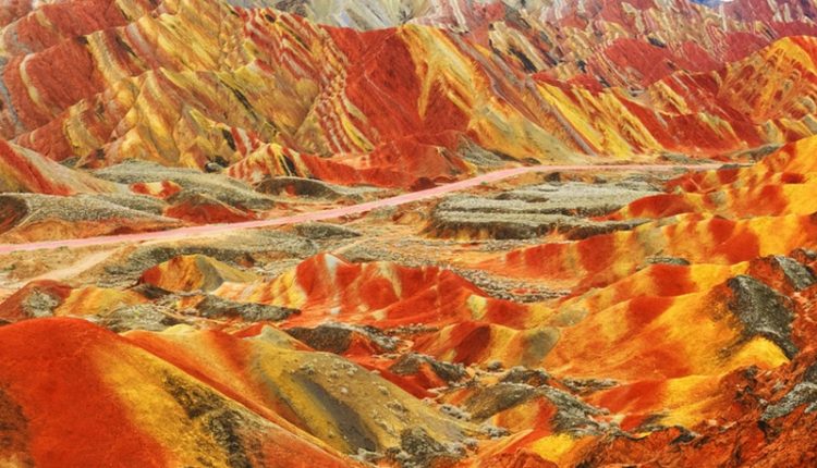 Gunung yang terletak di China ini tampak seperti hamparan pelangi karena itu orang menyebutnya ‘rainbow mountain’.