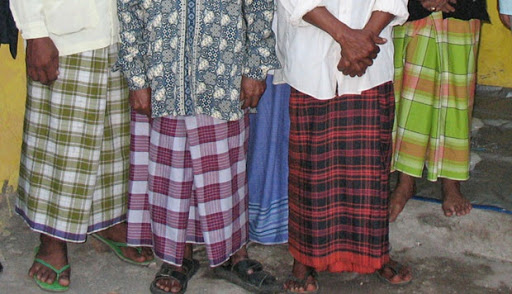 Bagi laki-laki kebiasaan yang berlaku adalah memakai sarung, celana atau penutup yang lain, dengan ketentuan bisa menutupi aurat. Apabila syarat menutup aurat tidak terpenuhi shalatnya tidak sah. Maka pakaian yang dipakai seseorang misalnya sarung atau celana harus bisa menutupi aurat dalam shalat.