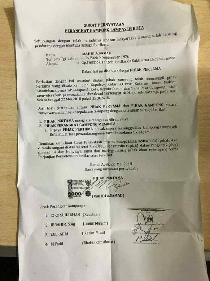 Dari bukti foto surat keterangan yang kami dapatkan diatas, pria tersebut pernah dilaporkan oleh warga di Gp. Tumbok Tengoh, Kecamatan Banda Sakti, Kota Lhokseumawe, Aceh.