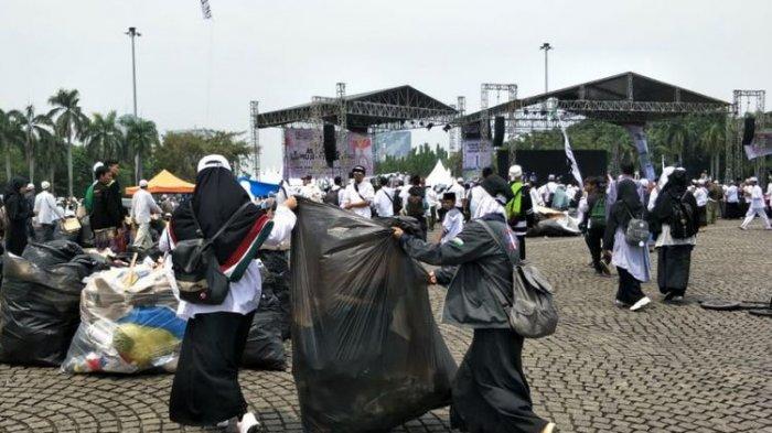 Peserta Reuni 212 Berinisiatif Kumpulkan Sampah Setelah Acara (foto: tribunnews.com)