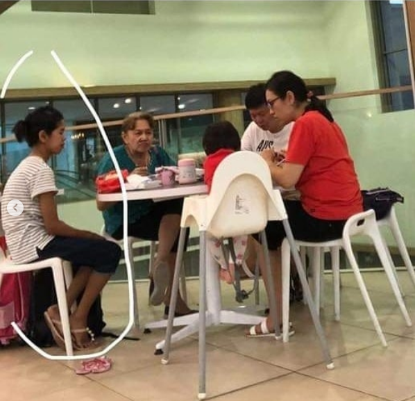 Foto yang memperlihatkan seorang pembantu yang hanya memperhatikan majikannya makan menjadi topik pembicaraan netizen.