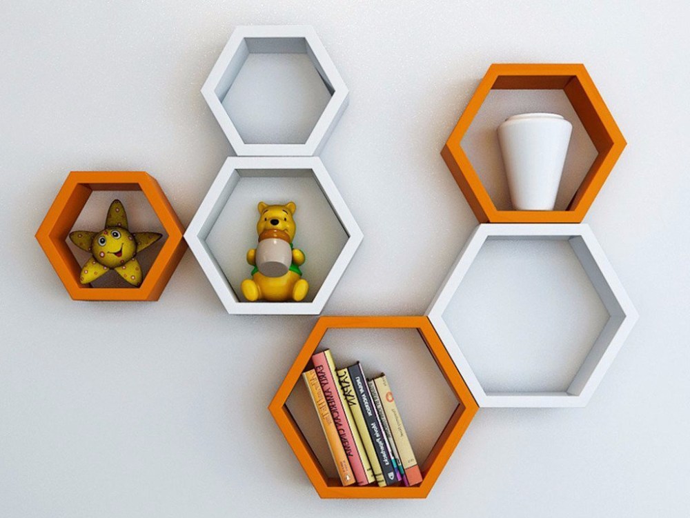 Bagai yang tidak ingin menggunakan floating shelves dengan gaya standar, anda juga bisa berkreasi membuat floating shelves berbentuk hexagon atau segitiga yang dapat memberikan kesan unik pada ruangan.