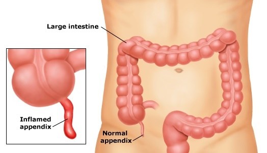 Gejalanya antara lain sakit perut yang sangat hebat disertai dengan demam, muntah, dan jantung berdebar-debar.