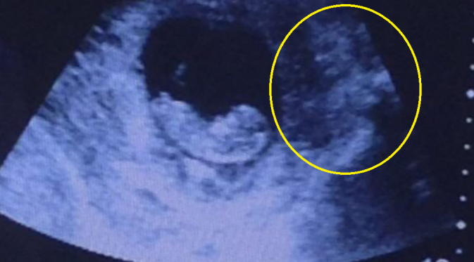 Seperti USG pada umumnya, foto tersebut menunjukkan janin, yang berusia 8-10 minggu di dalam rahim ibu. Bukan calon jabang bayi itu yang dipersoalkan, melainkan penampakan wajah mengerikan yang ada di sebelahnya, yang sekan-akan sedang menatap ke arahnya.